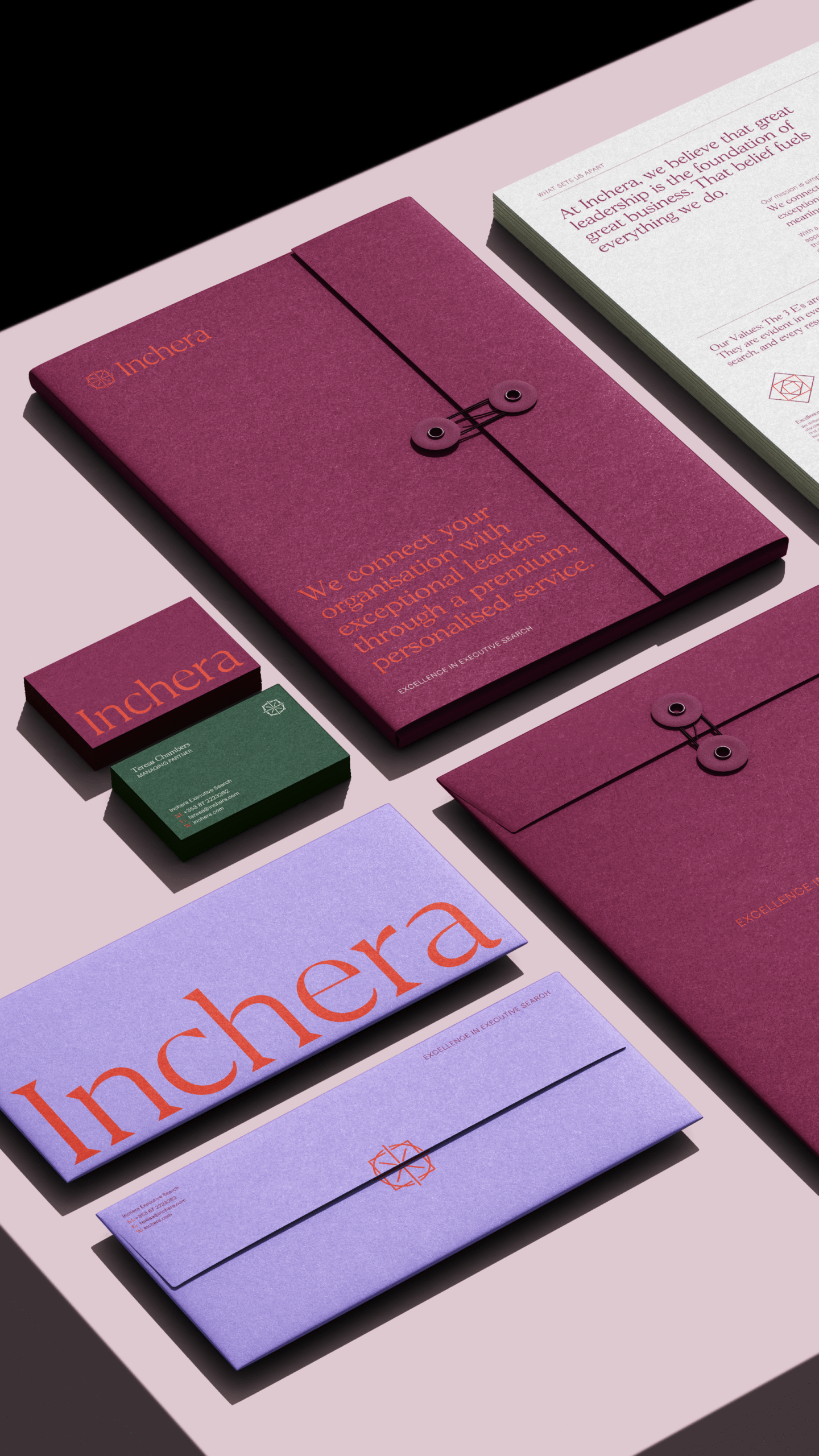 Partnering with boutique executive search firm Inchera, we developed a distinct brand strategy and positioning, and led the creative direction of its new identity.